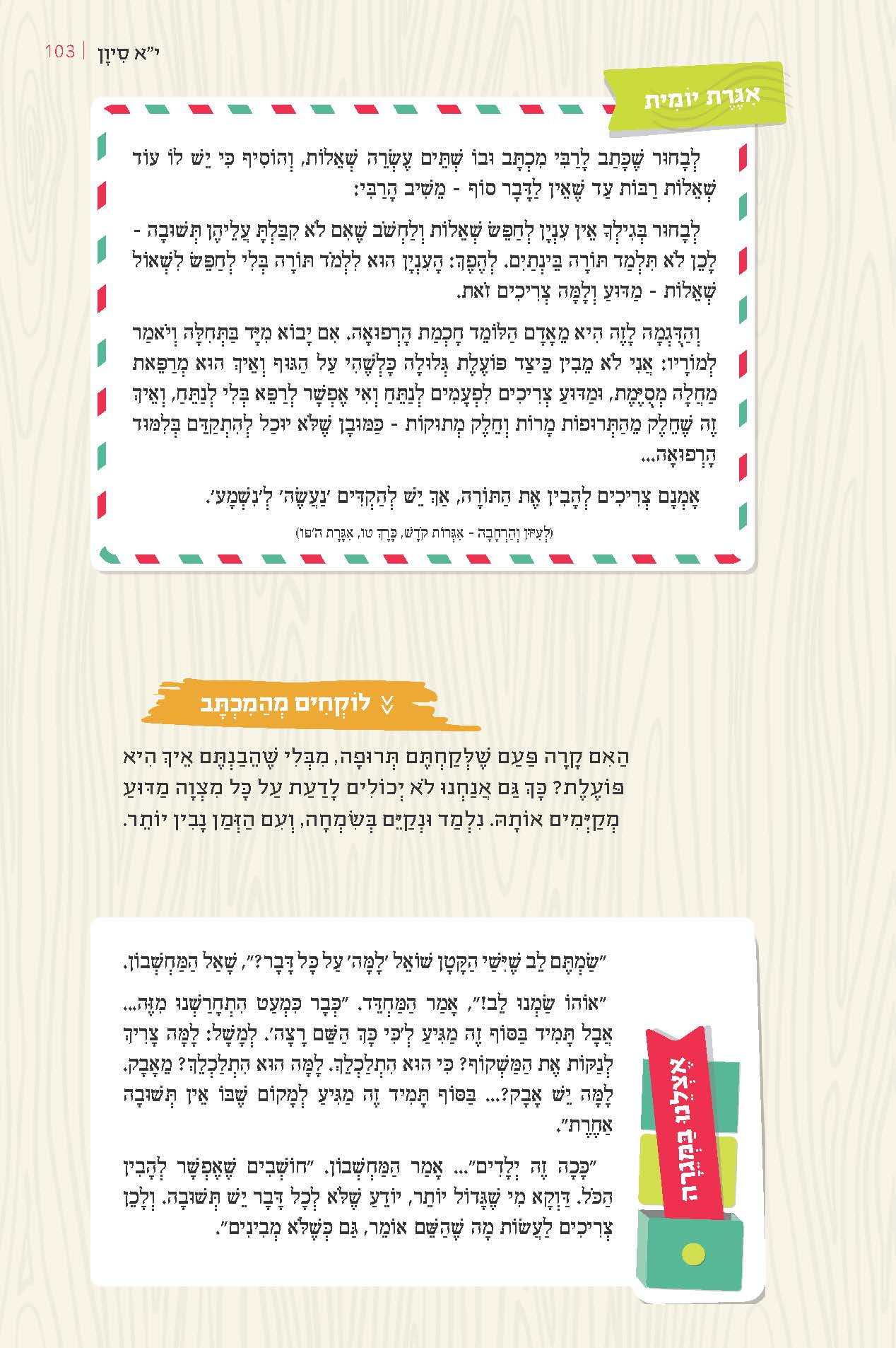 [. .] הילדים בהבל פיהם, בלימוד תורתם, מסוגלים להועיל יותר ממה שמסוגלים אביי ורב פפא – כך אמרו חז"ל – הם מסוגלים להוציא את השכינה מן הגלות, את כל עם־ישראל כולו ואת הוריהם מן הגלות, ולהביא את מלך המשיח.