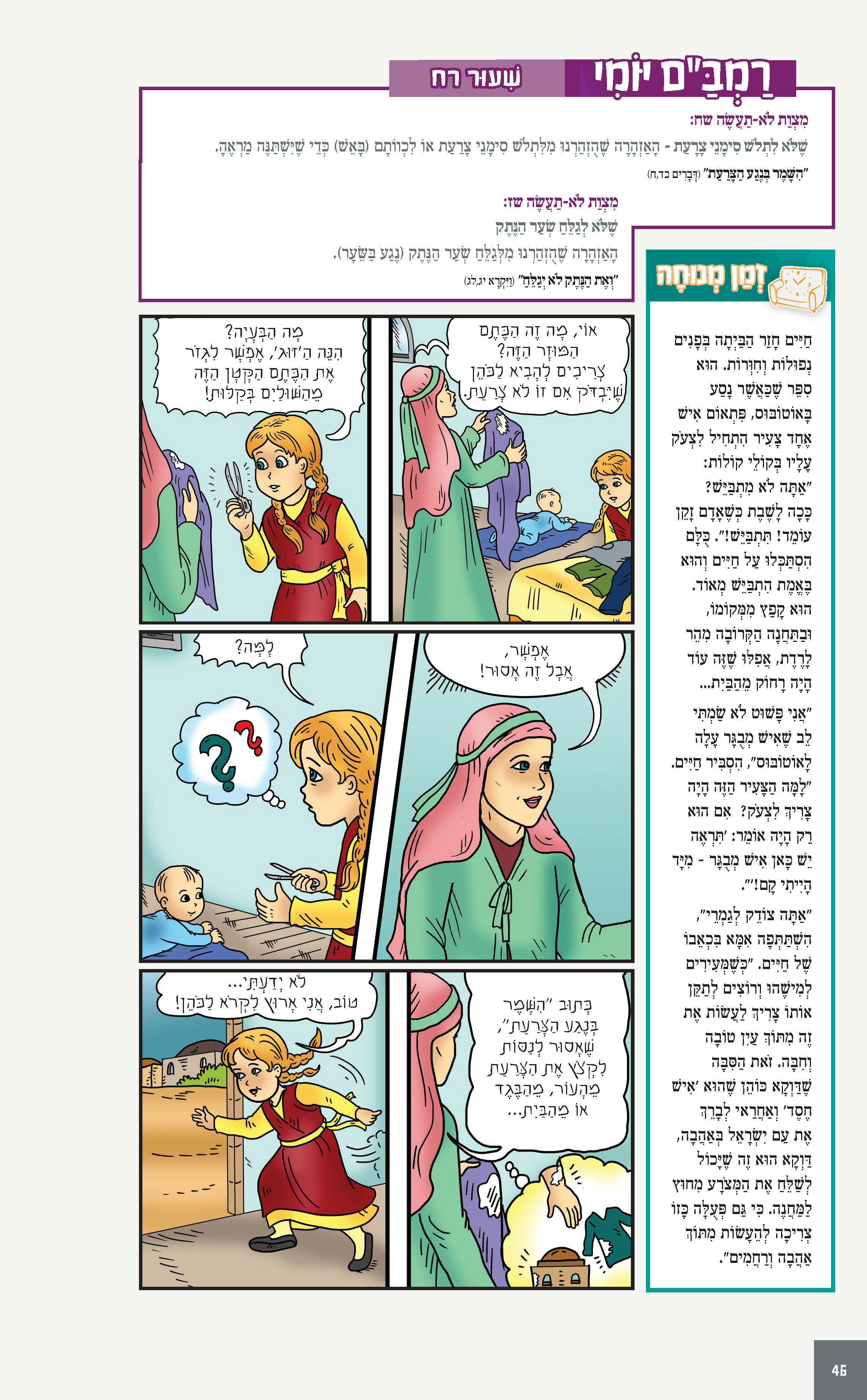 מצות לא תעשה מצוה שח הזהירנו מלקוץ סימני צרעת או לכוותה עד שישתנו מראיה. והוא אמרו השמר בנגע הצרעת. ולשון ספרי השמר בלא תעשה. ולשון המשנה התולש סימני טומאה והכוה את המחיה עובר בלא תעשה, והוא לוקה כמו שבארנו. (תצא, שם): מצות לא תעשה מצוה שז הזהיר מלגלח שער הנתק. והוא אמרו ואת הנתק לא יגלח. ולשון ספרא מנין לתולש סימני טומאה שעובר בלא תעשה תלמוד לומר ואת הנתק לא יגלח. (תזריע, הלכות טומאת צרעת פ"א):