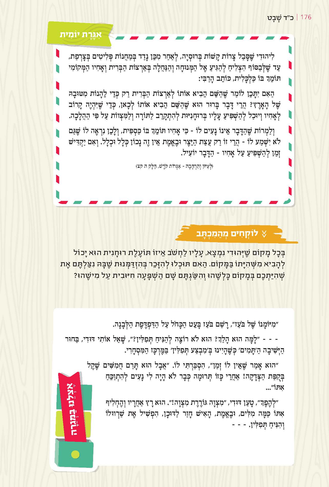 - (יב) ששה ימים עובד אדם את עבודתו. היום השביעי הואר יום מנוחה לאדם לעבדיו ולבעלי החיים שברשותו.
