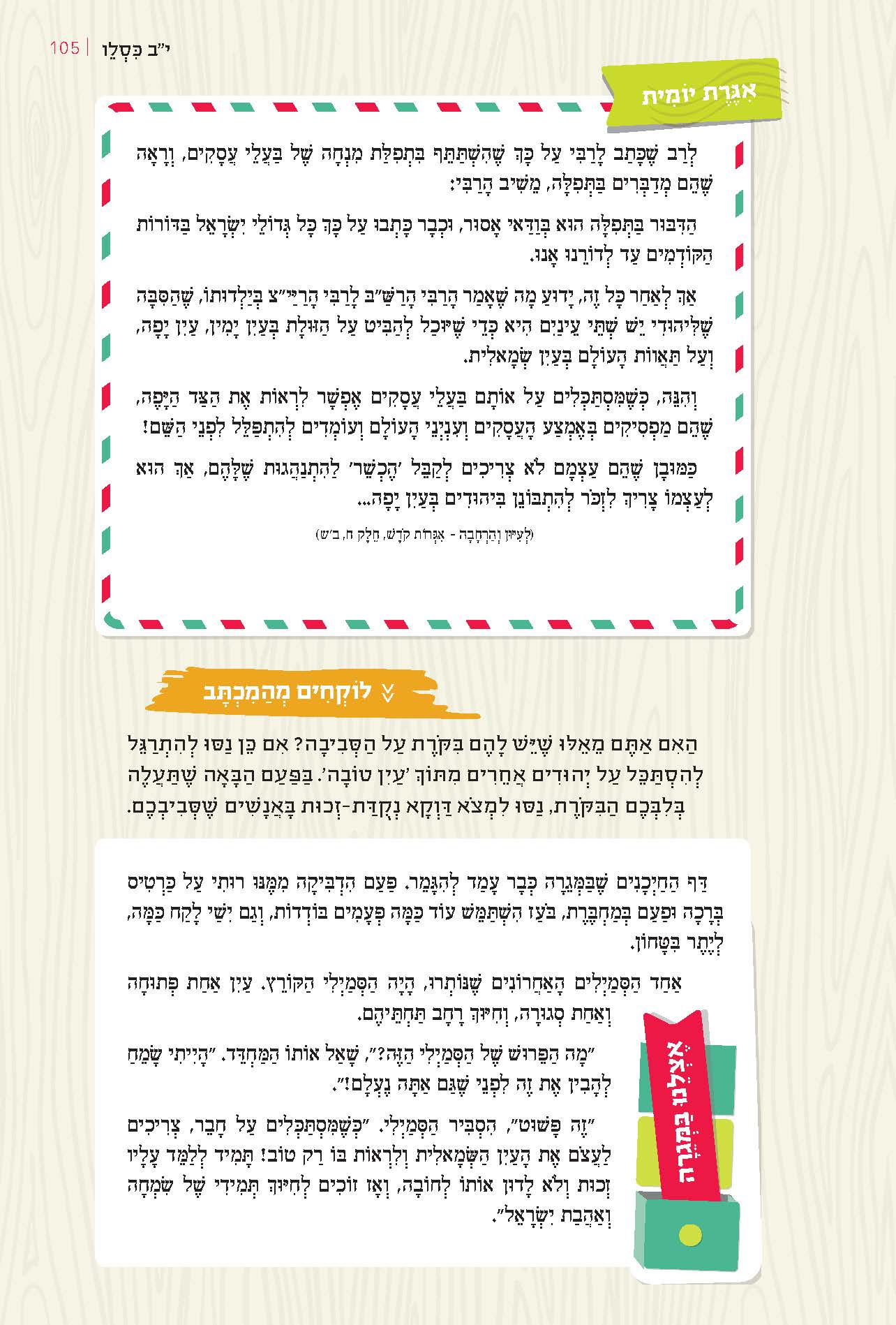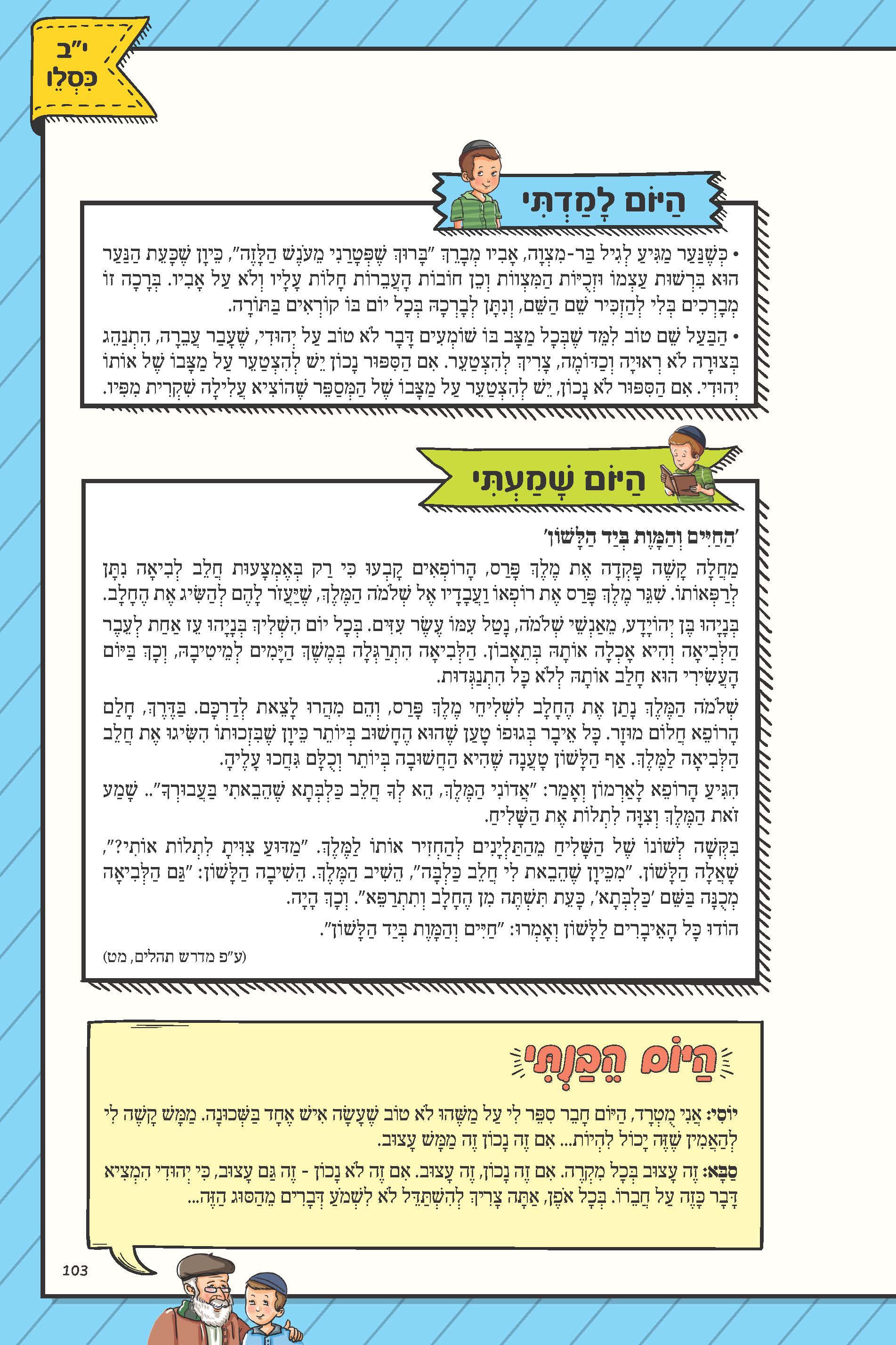 תמצית: על־פי דוד המלך, בזכות הילדים ייבנה בית המקדש. בזכות לימודם ותפילתם יוּשבת האויב, ואז תהיה מנוחה ובית־המקדש יוכל להיבנות.